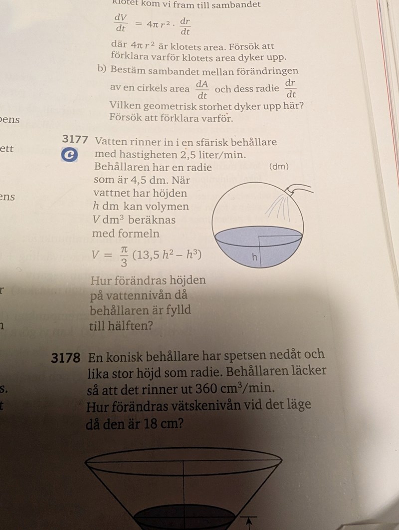 - dh/dt sökes i det ögonblick då h = 4,5 dm