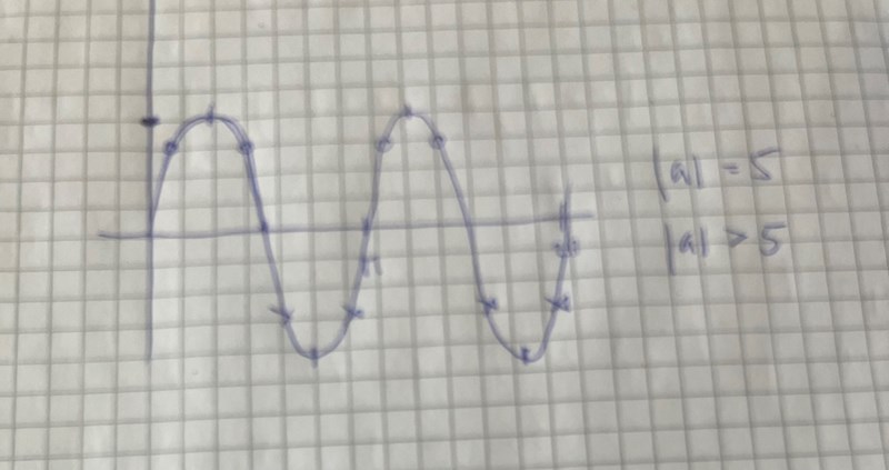 I mitt huvud blir antalet lösningar oändligt sålänge a > 5 eller a<-5. I och med att a kan variera kan det alltså anta vilket värde som helst, och det finns oändligt med värden i spannet jag angav där, och därav oändligt med lösningar. Men Svaret är att det är 4 lösningar i det spannet. Mycket konstigt.