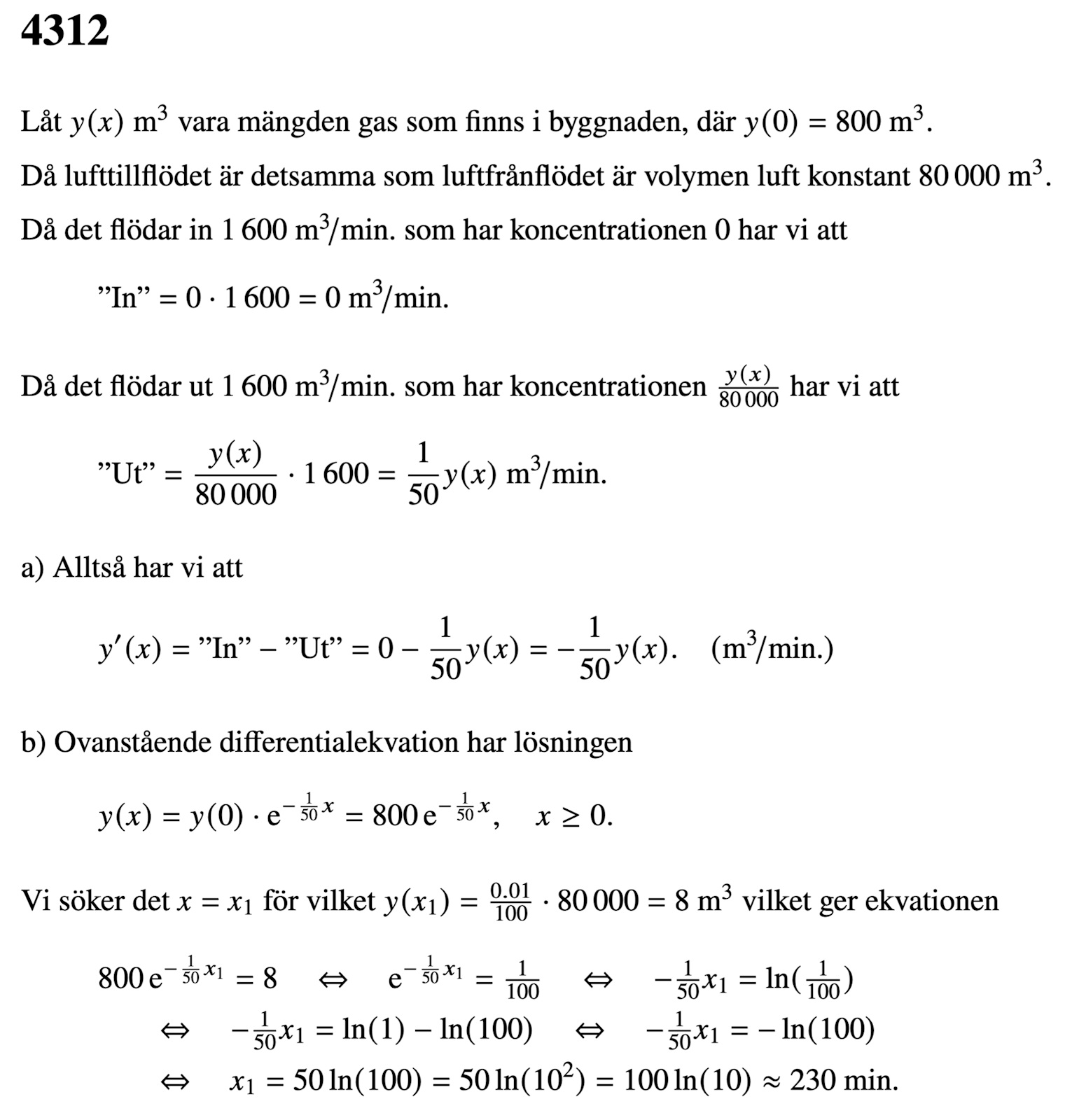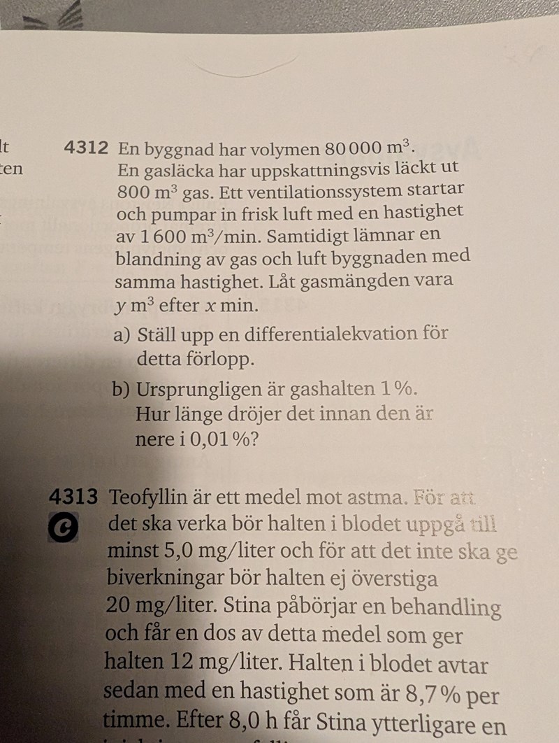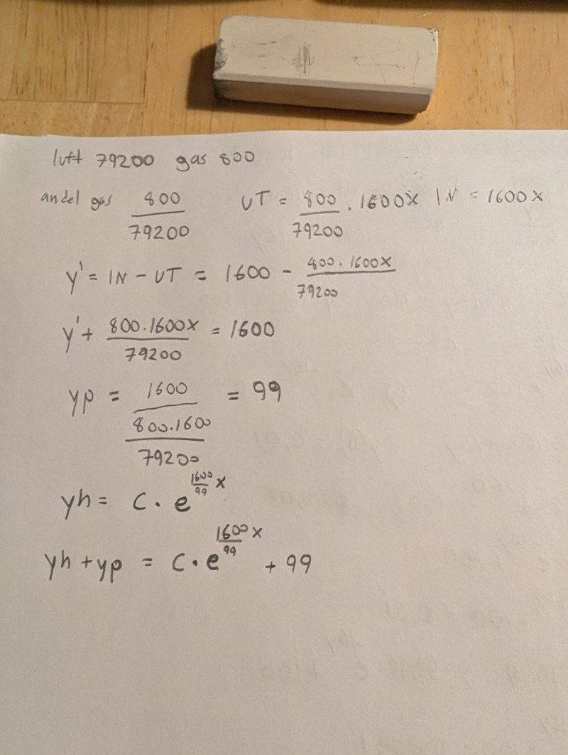 Tog hjälp av AI och begrep en del av det i alla fall. Förstår inte varför mängden gas ska vara y/80000 och inte y800/80000, det står ju att det har läckt ut 800.. men struntsumma.