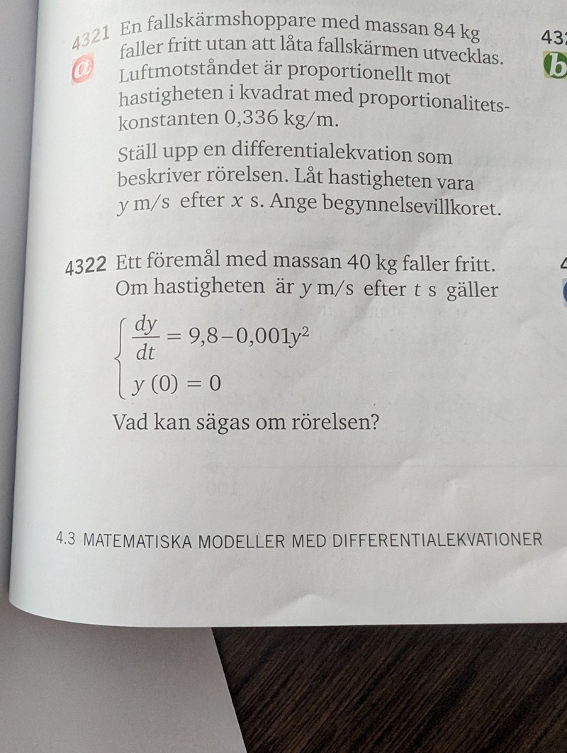 Den givna differentialekvationen säger att . I facit tittar de på luftmotståndet, d.v.s. kraften , och då gäller .