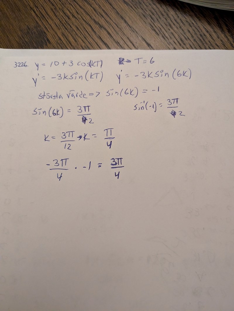 Tror att man ska begripa att från låg till hög är endast en halv period, och man måste därifrån se att t därför är 12 timmar. Det hade jag aldrig gjort. Annars var det rätt i varje fall, aja.
