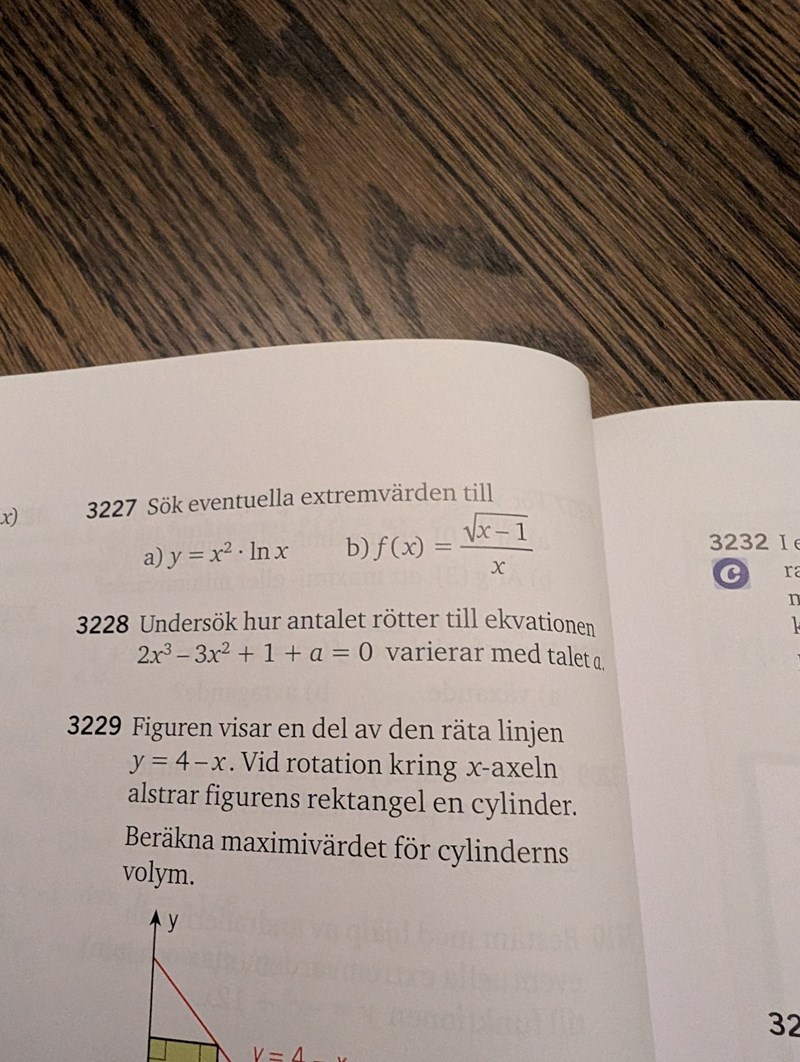 Matematik 5000. Kurs 5. Uppgift 3227. Extremvärden.