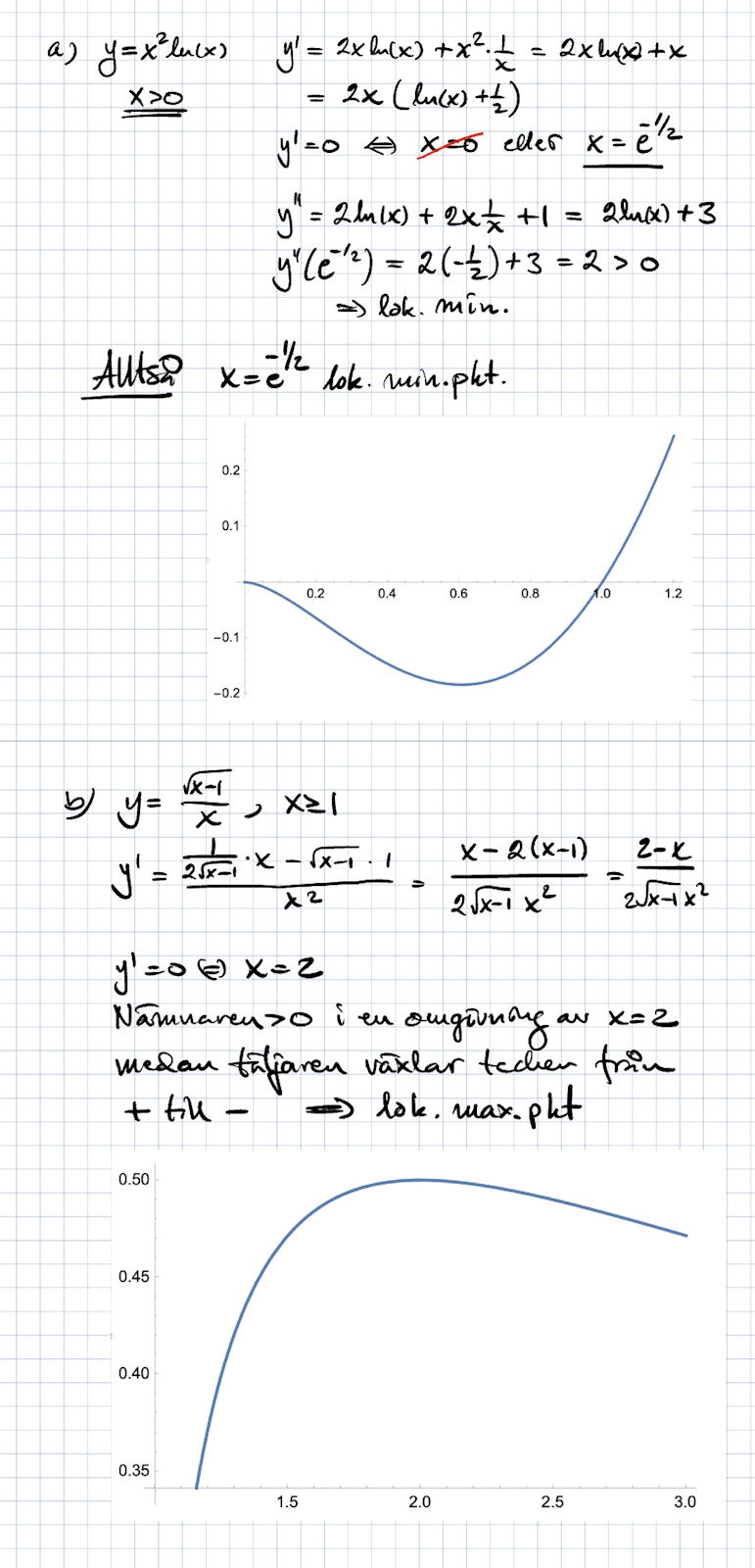 Hur söker jag extremvärden fråga a) och b)?