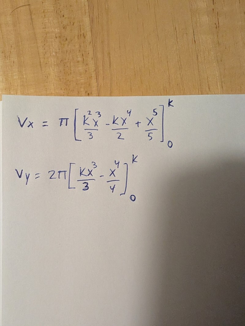Då kan du formulera de båda rotationsvolymerna som funktioner av k.