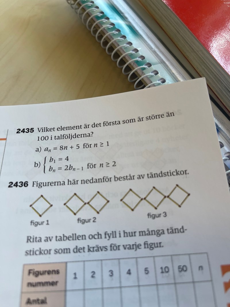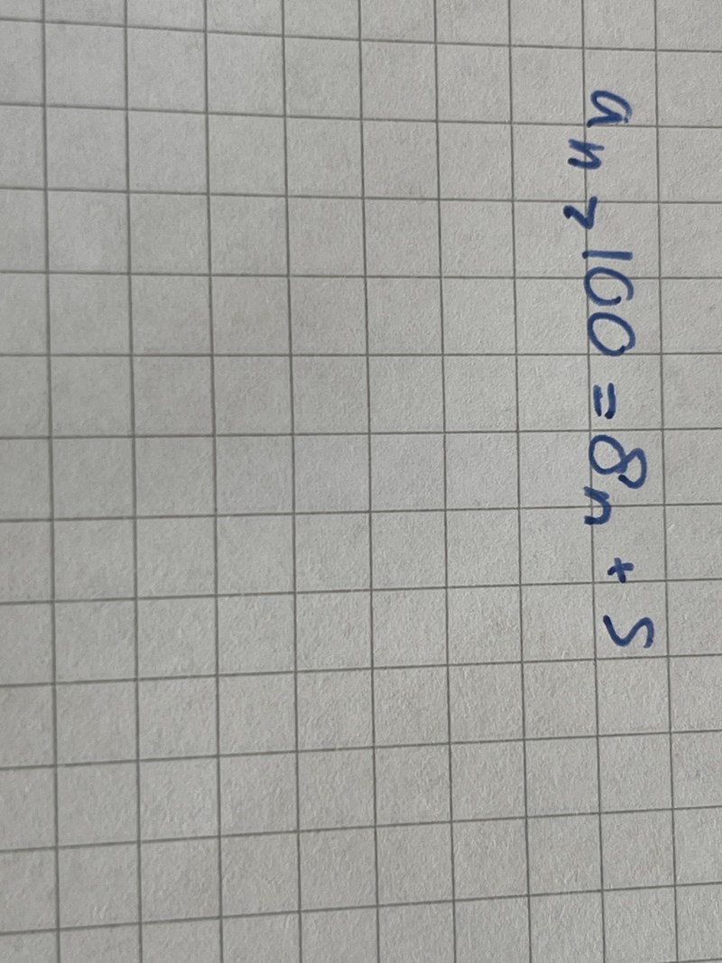 Eftersom an = 8n+5 så får vi olikheten 8n+5 > 100.