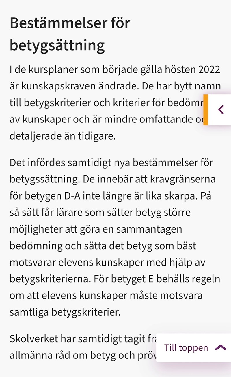 (Notera också att det på grund av detta inte längre heter "kunskapskrav" utan "betygskriterier".