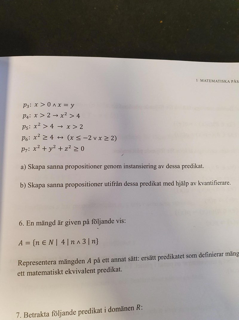 Uppgiften är att glra predikatet till en sann proposition, vi har inget facit så jag vet inte om jag gjort rätt... antar att det jag skrev var fel... men jag förstår inte varför och vad det rätta svaret skulle vara