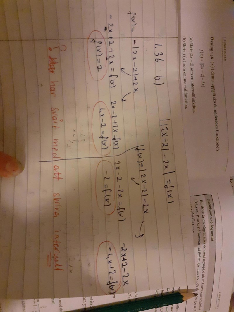 Har försökt skriva funktionerna. Men jag har svårt med att bestämma intervallen. Eftersom jag inte kan intervallen, går det inte att lösa uppgiften. Vet ej vilken funktion blir