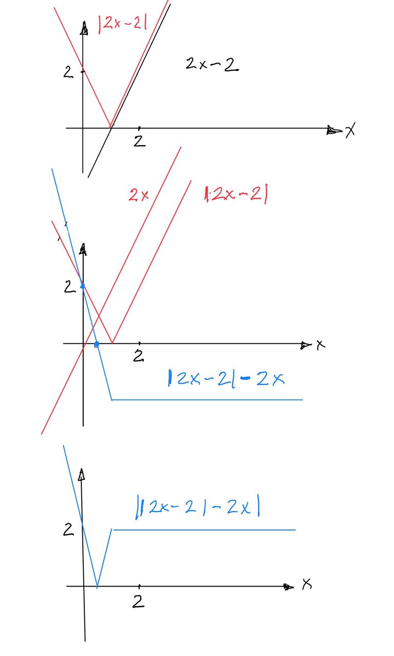 Eliminera absolutbeloppen en i taget "inifrån och ut" genom att dela upp funktionens definitionsmängd i olika intervall.