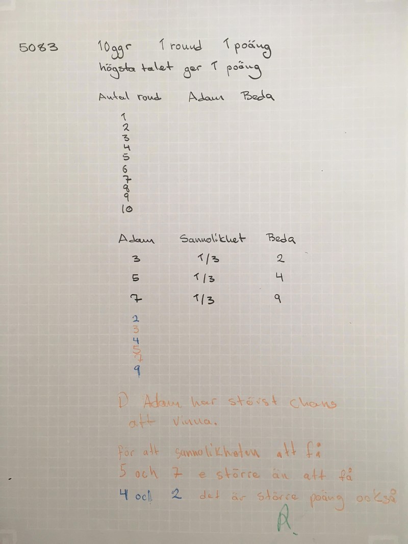 Matematikboken Z kapitel 5.5 Tabeller och diagram uppgift 5083