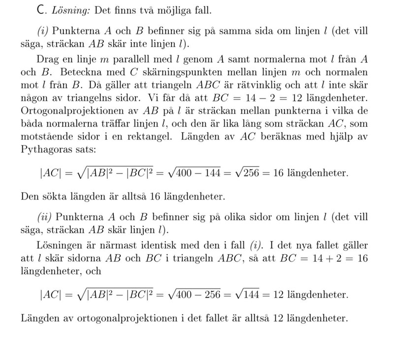 Hur skulle ni förklara ortogonalprojektion av AB på linjen l? Jag förstår inte varför ekvationen är .