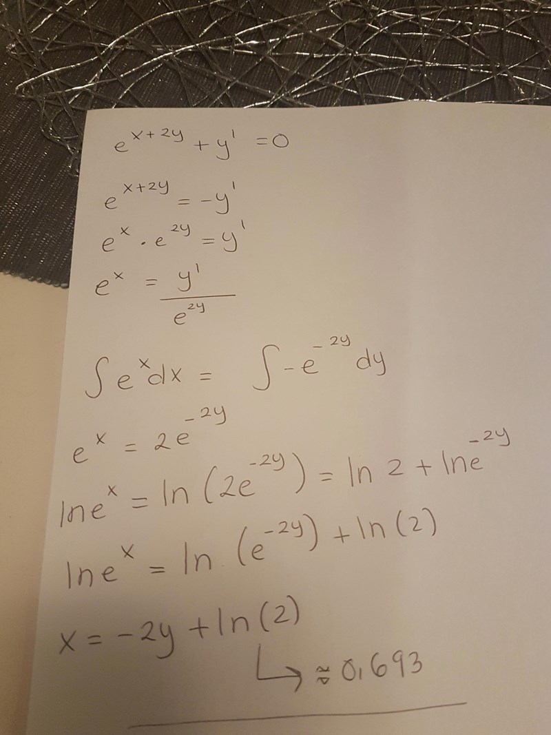 Om vi får över allt innehållande på ena sidan och allt med på andra kan vi integrera båda led med avseende på respektive variabel.