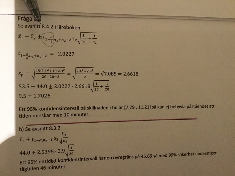 Hej jag har fastnat i den uppgift vi vet att X1 = 53,5. X2 = 44,0. Där jag har markerat på bild Dvs lösningen vilka värde är det? Vad Är t1- ?