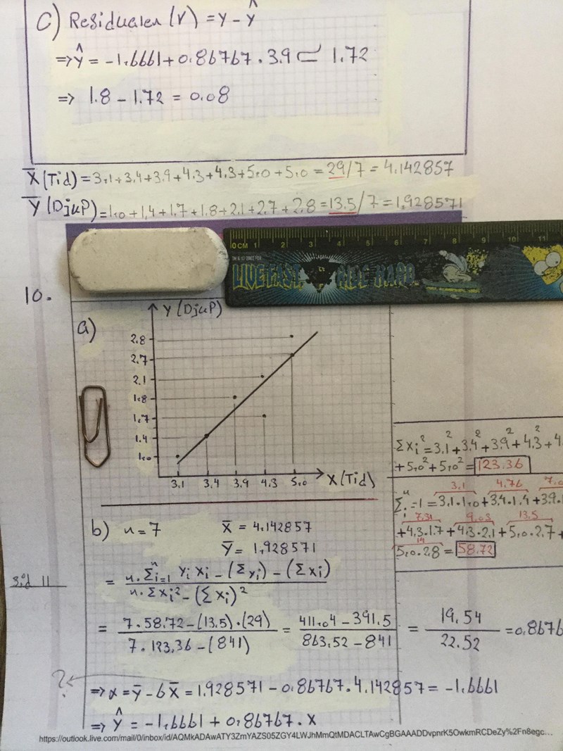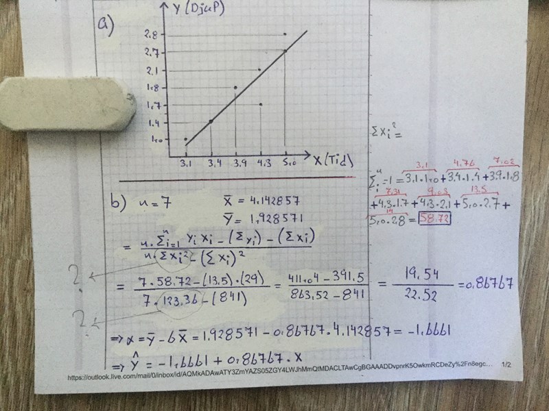 Är det inte så att man skall ta X (tid)= 3,1^2 + 3,4^2 + 3,9^2 +4,3^2 + och 5,0^2 = jag får 79,87 . jag får inte 123,36 förstår inte vad det är jag gjor fel🙏🏽🙏🏽