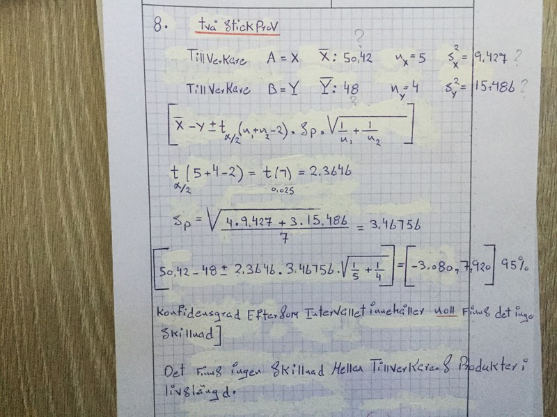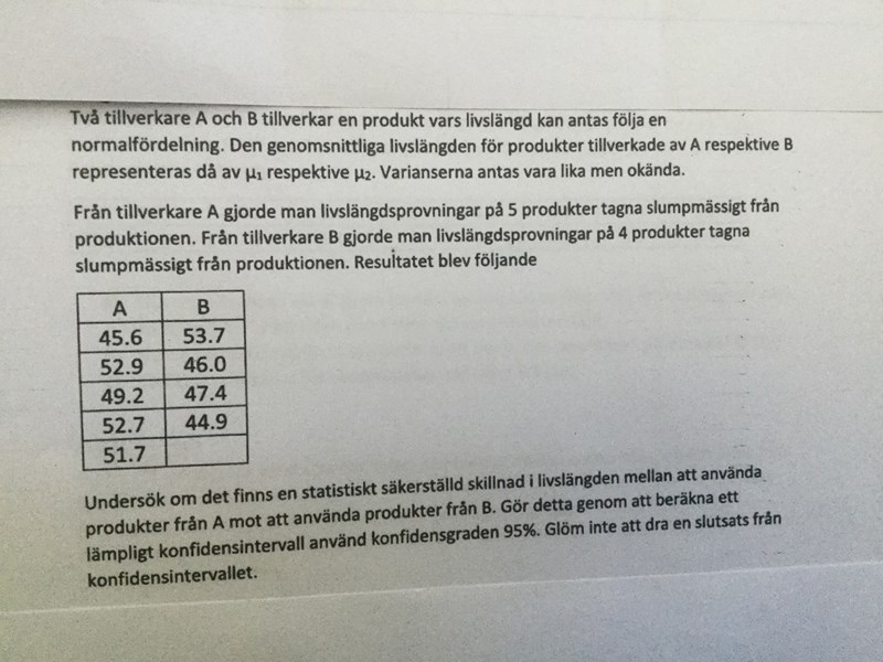 Jag har räknat medelvärdena på A= 45,6+52,9+49,2+52,7+51,7=252,1 / 5= 50,42