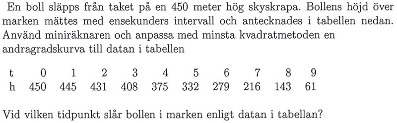 På min kalkylator [Ti-82] klickade jag på [STAT] -> [CALC] -> [QuadReg].