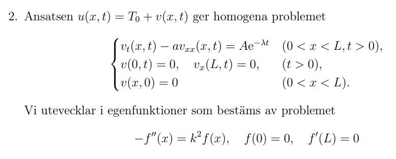 Den allmänna lösningen till diffekvationen -f’’2 = k2f är f(x) = acoskx + bsinkx.