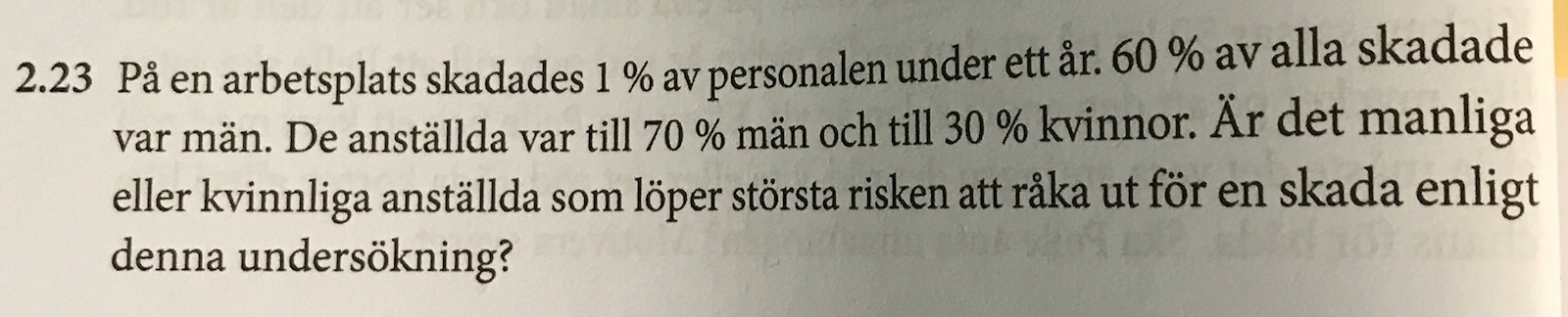 dvs andelen K av de skadade är större än andelen K av de anställda