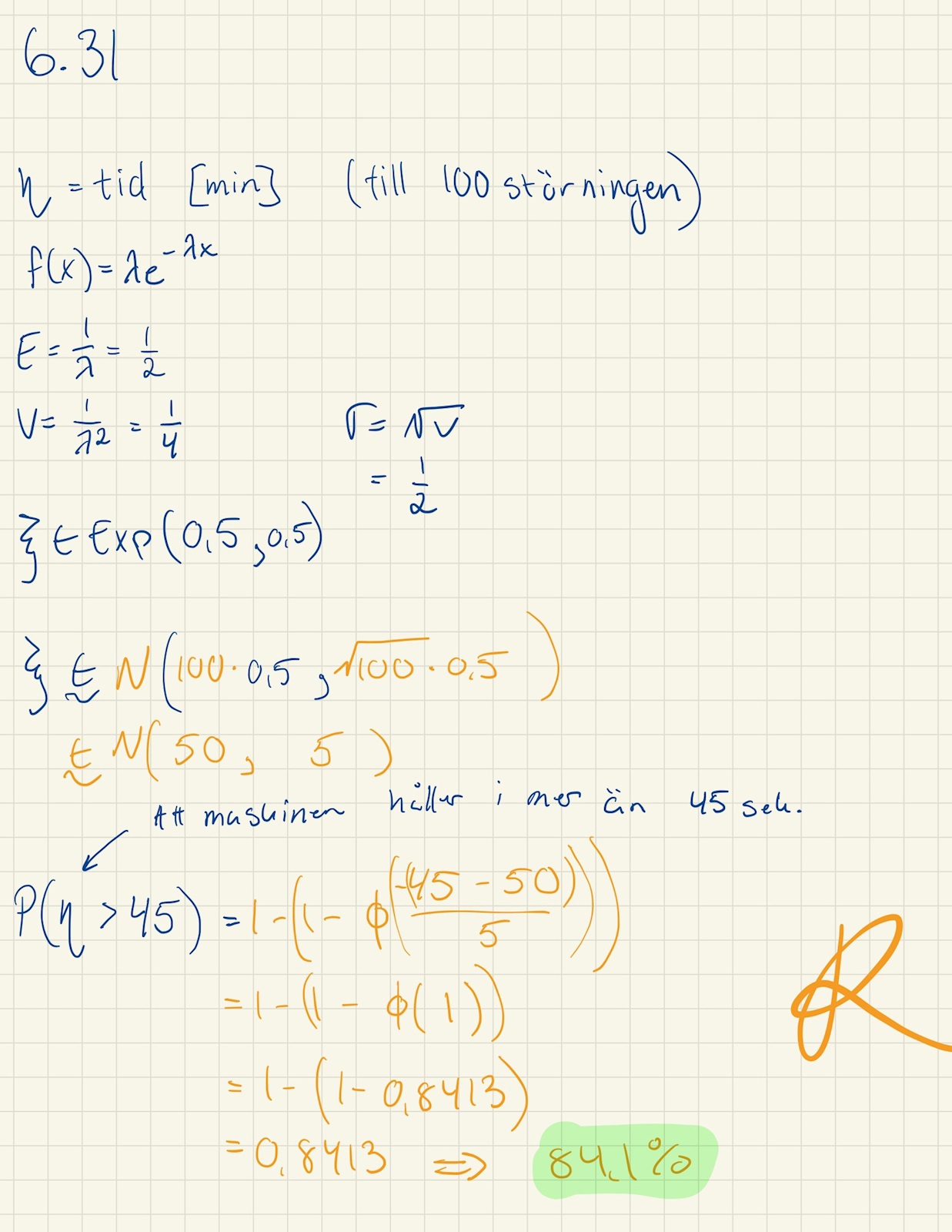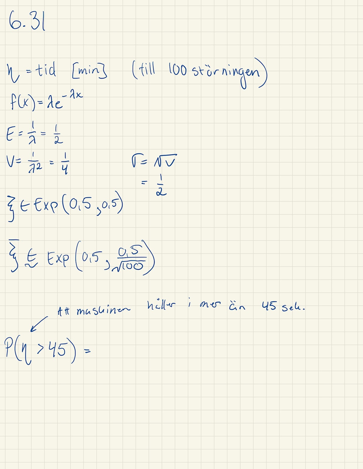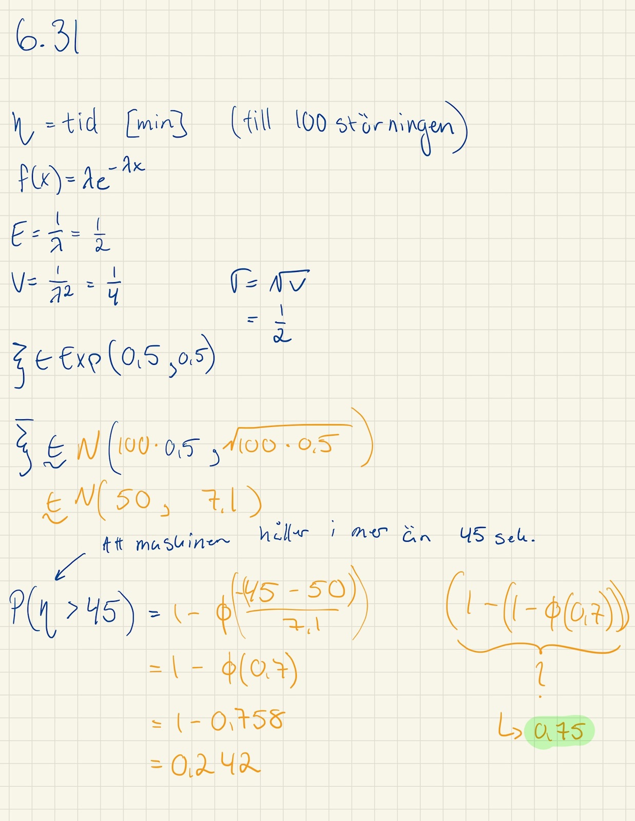 Matematisk Statistik, Centrala gränsvärdessatsen, 6.31 (K.Vännman)