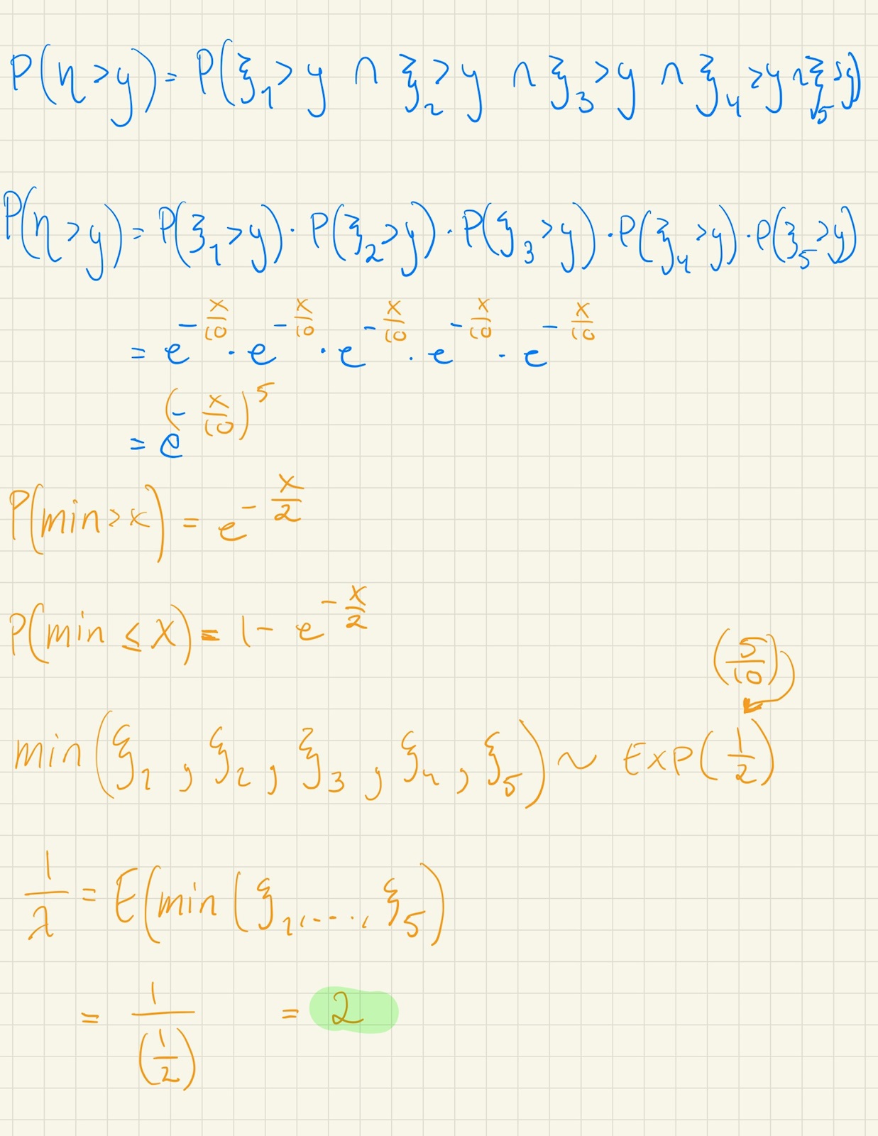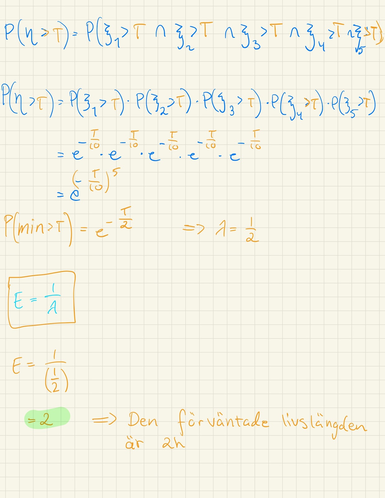 Har det inte blivit ett extra ”förväntade” här? Den förväntade livslängden är väl en konstant (2) och därför inte exponentialfördelad. Lampans livslängd är däremot exponentialfördelad med väntevärde 2