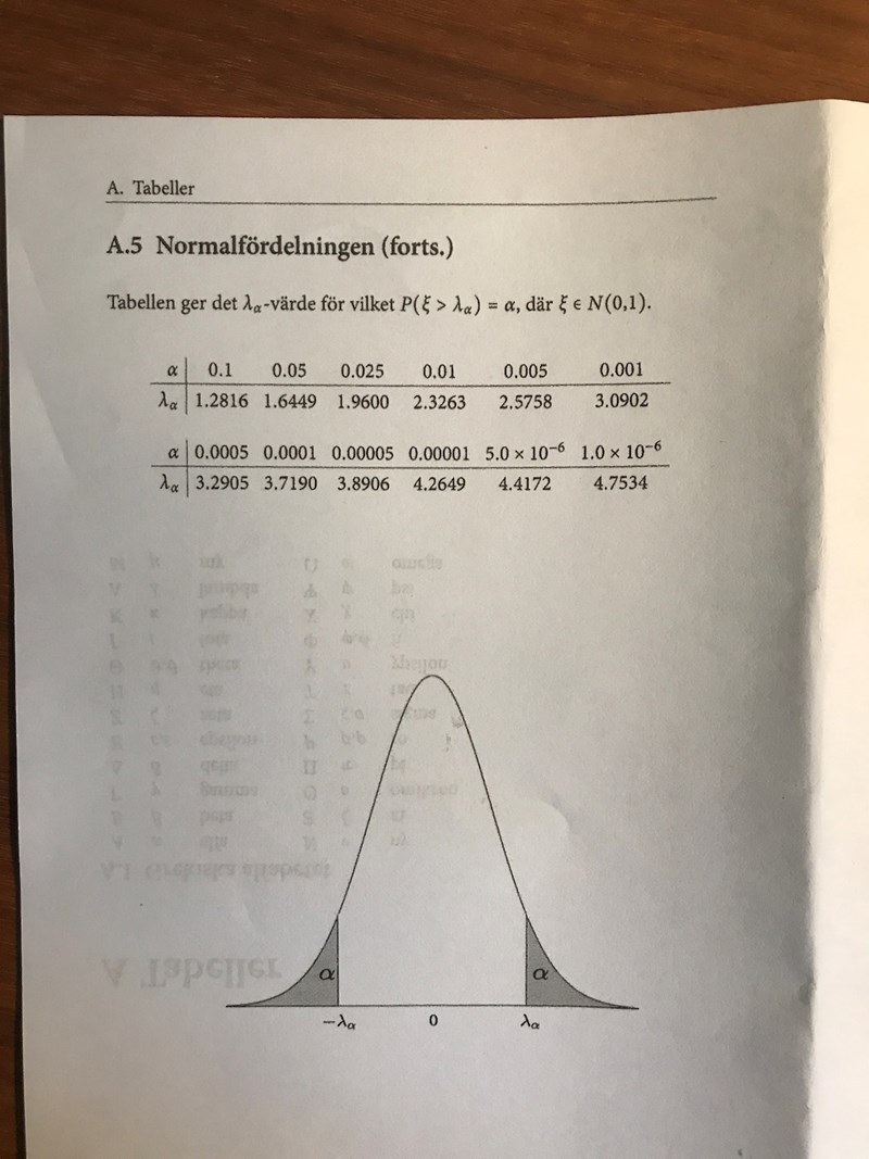 Micimacko skrev:Använd en helt vanlig normalfördelningstabell, brukar ligga först i de flesta formelsamlingar.