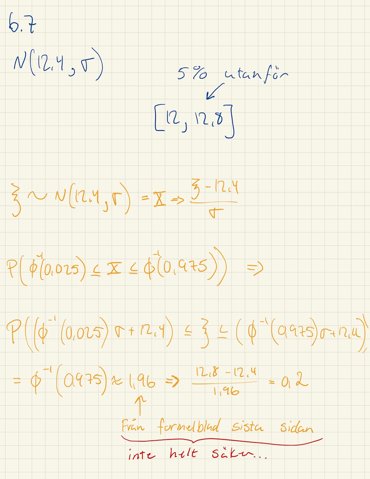 Matematisk Statistik, Normalfördelning, 6.7 (K.Vännman)