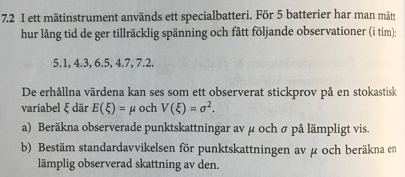 Matematisk Statistik, Punktskattning, 7.2b (K.Vännman)