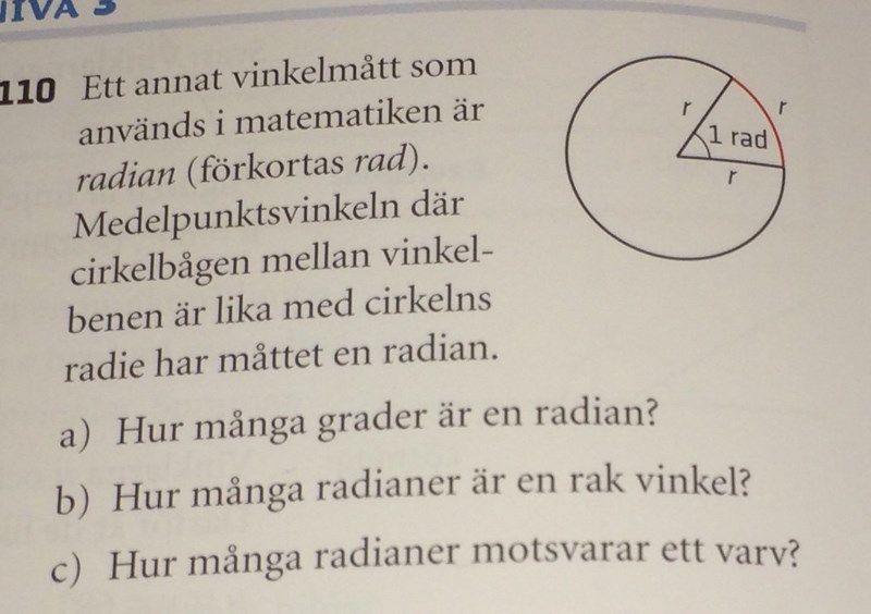 Matteboken har en artikel om just radianer, där de omvandlar mellan grader och radianer. Ett annat sätt att räkna ut detta på är: