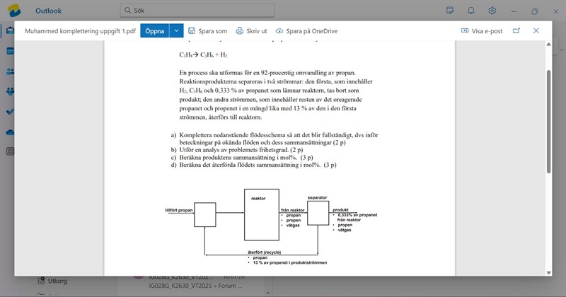 Du ska namnge flödena så det blir lättare att räkna med dem senare. Kanske du kan kalla flödet ”tillfört propan” för A, något annat flöde för B osv.