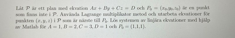 Men som jag förstått det ska man hitta en punkt i det angivna planet som är närmst P0