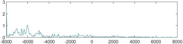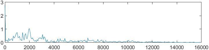 frekvens i x-axlar och amplituden på y-axel, jag borde snygga till det. De som jag inte förstår varför bli det en hög peak på nollställe men sen hela vägen är avtagit. Har de nånting göra med desto högre frekvens sen försvinner det? från audio så har sampling frekvens på 32000 och NFFT man använder bara 512 och 1024 som man får från nextpow2. Är de orsaken de blir så här, på grund de för stora skillnad med väder? Skulle man använda en sinus funktion med givna tal skulle man få en bättre resultat vad jag vet.