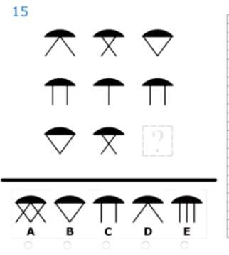 I vågrät riktning rör sig ena sträcket åt höger, andra åt vänster. I lodrät riktning roteras strecken i motsatt riktning, svaret blir D.
