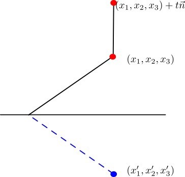 I formeln för spegling som du skrev är n=normalen om jag tolkar rätt men vad står x för? Ska jag sätta in värdet för x_1, x_2 och x_3 där?