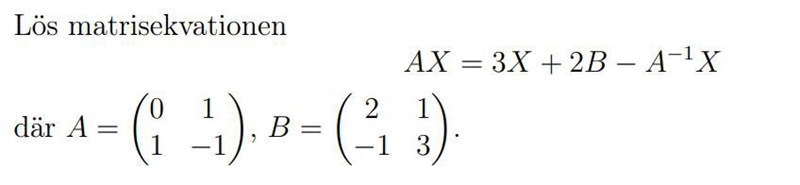 AX=3X+2B-A-1X  kan skrivas som (A+A-1-3I)X=2B