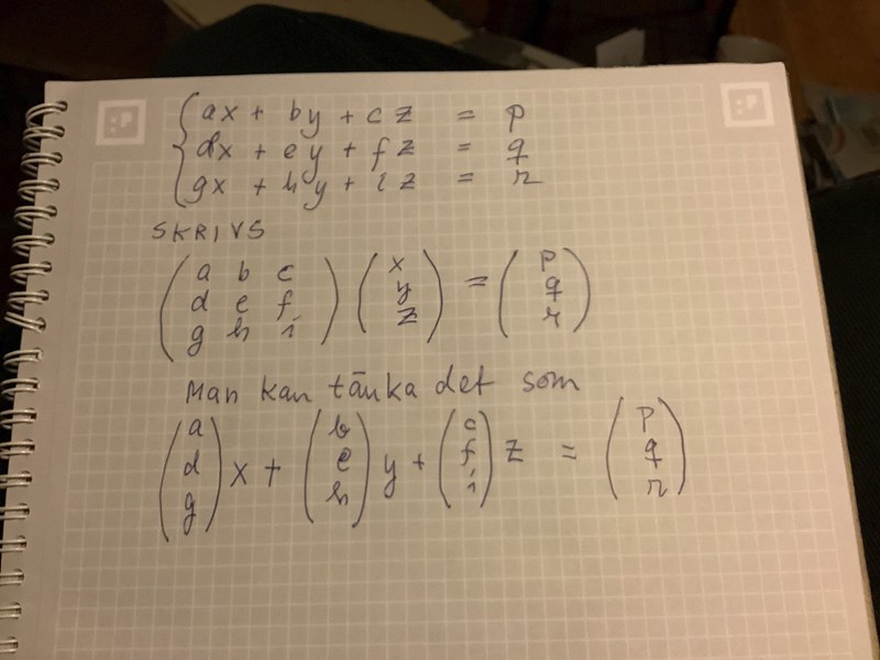 Kan någon förtydliga hur ekvationsystem skrivs på matrisform.