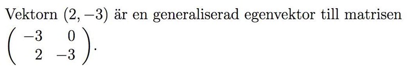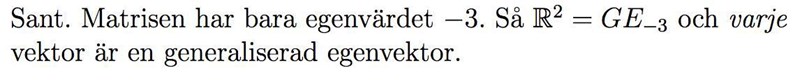och sedan byter ut sista kolumnen mot lösningen (eller vilken algoritm ni nu använder för att hitta egenvektorerna) ser du att alla godtyckliga vektorer i kan utgöra en generaliserad egenvektor. Ett annat sätt att se på saken är att egenvektorerna ska spänna