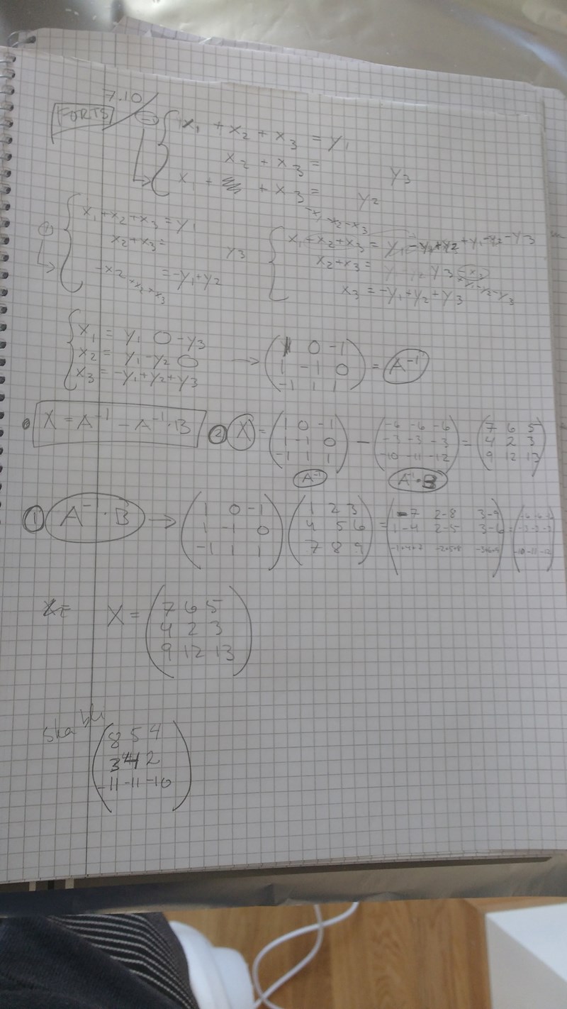 Jag kommer fram till att X = A^-1 - A^-1 * B