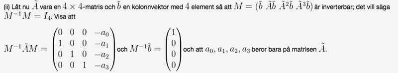 Jag vet inte hur jag ska börja, om de vill att jag ska försöka ta fram en matris A, b respektive M och sedan visa eller gå tillväga på ett annat sätt?