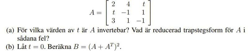 Alltså måste vi måste undersöka specialfallet separat. Det gör vi genom att sätta in överallt där det står t. Du får du en matris som ser ut så här: