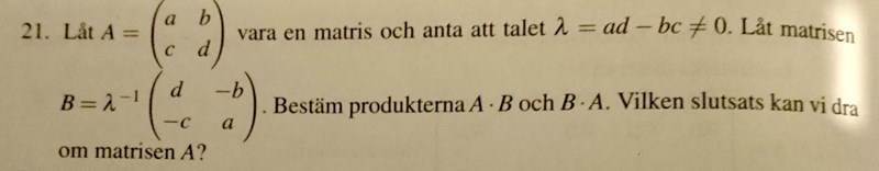 1. Precis som uppgiften visar att B är, är ett sätt att hitta inverser för 2x2-matriser. Att ta determinanten av det första (vilket är lambda) och sedan beräkna och flytta runt som de gjort.