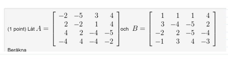 Kan någon läsa igenom min matris AB och påpeka om/var det gick åt skogen, innan jag ger mig på BA?