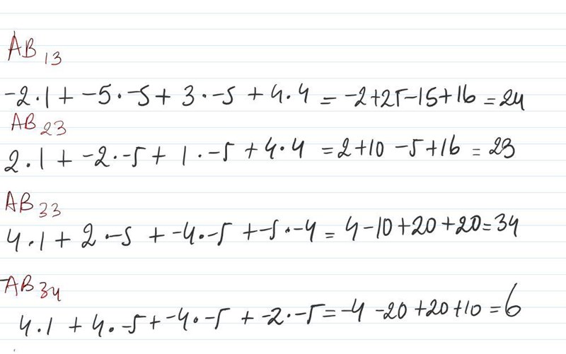 Titta på (2,1) och (4, 3) igen. Du har summerat fel. PS: du har vänt på rad- och kolumnnummer i dessa notationer i dina anteckningar. :)