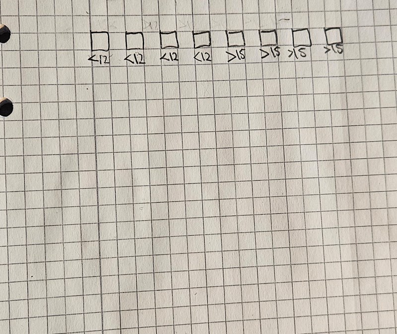 Ja, om du har större tal åt höger, så är villkoren fel. De största är >12 och de minsta är <15.