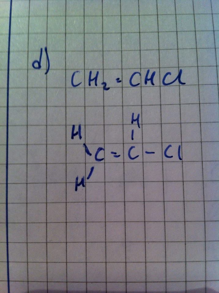 Hur ska jag tänka i d) om de ska polymerisas med en kloreten, hur ska jag rita upp? Var ska jag sätta kloretenen?