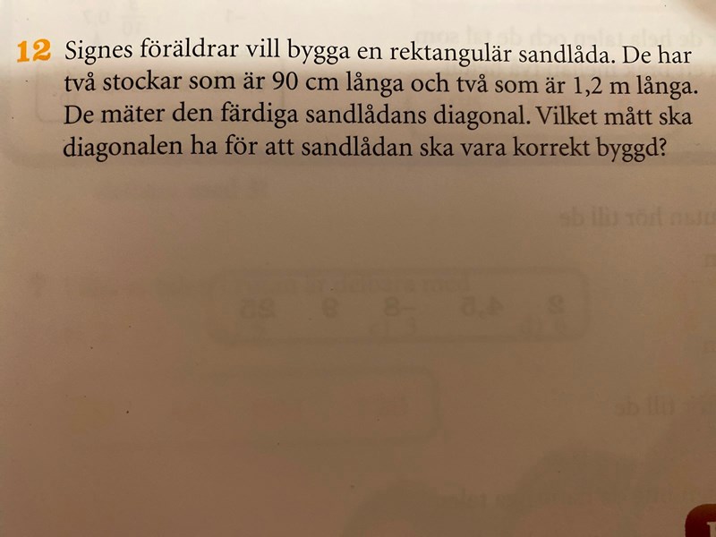 Du kan använda dig av Pythagorasatsen, a2 + b2 = c2, för att få fram hypotenusan (diagonalen).