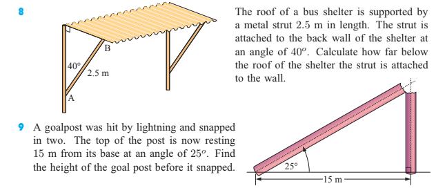 Gällande frågan om stolpen, här behöver du använda trigonometri. Har du använt trigonometri tidigare? :)