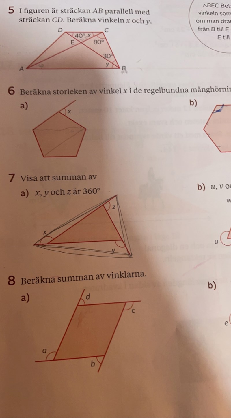 8a) jag vet att tillsammans är 4 hörn 360 grader. Och nämnde de 4 hörnen Y X Z och F