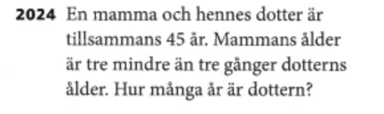 Om du kallar dotterns ålder för x får du att mammans ålder är 3x - 3