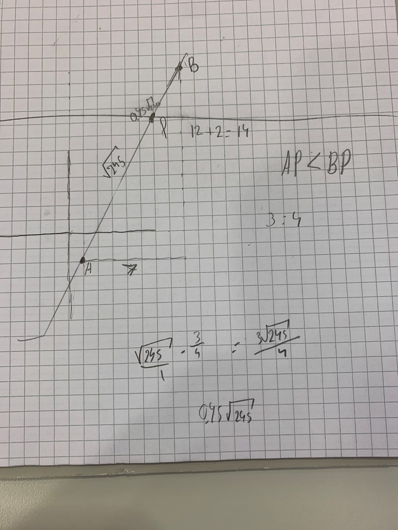 Det står att sträckan AP < sträckan PB.