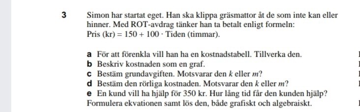 Linjära uttryck - kostand för gräsklippning